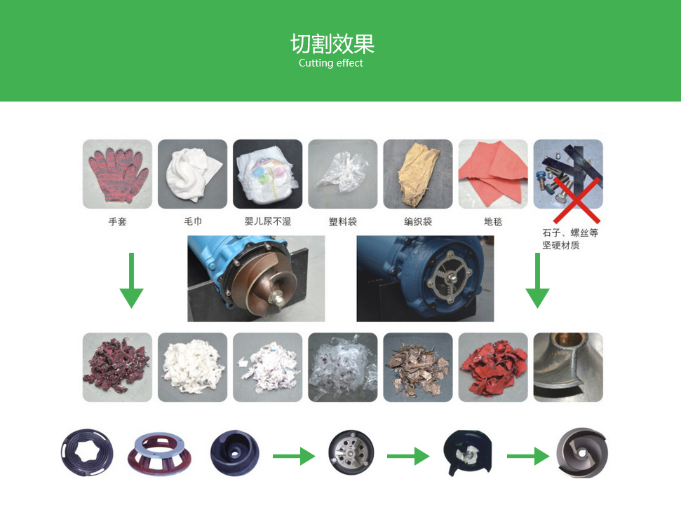 ①采用獨(dú)特的單葉片或雙葉片葉輪結(jié)構(gòu),大大提高了污物通過能力,能有效的通過泵口徑的5倍纖維物質(zhì)與直徑為泵口徑約50%的固體顆粒。