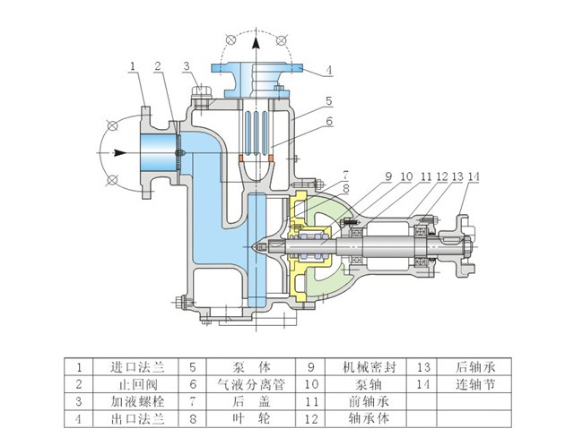 3、為使泵體內(nèi)能夠保持一定的儲存液,以達到較好的自吸能力和防止機械密封的干磨擦,必須使泵的